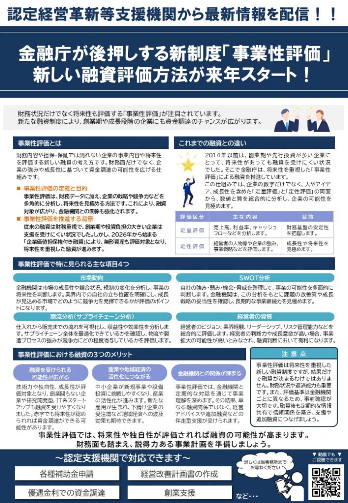 金融庁が後押しする新制度「事業性評価」新しい融資評価方法が来年スタート!(NewsLetter2025年11月号)