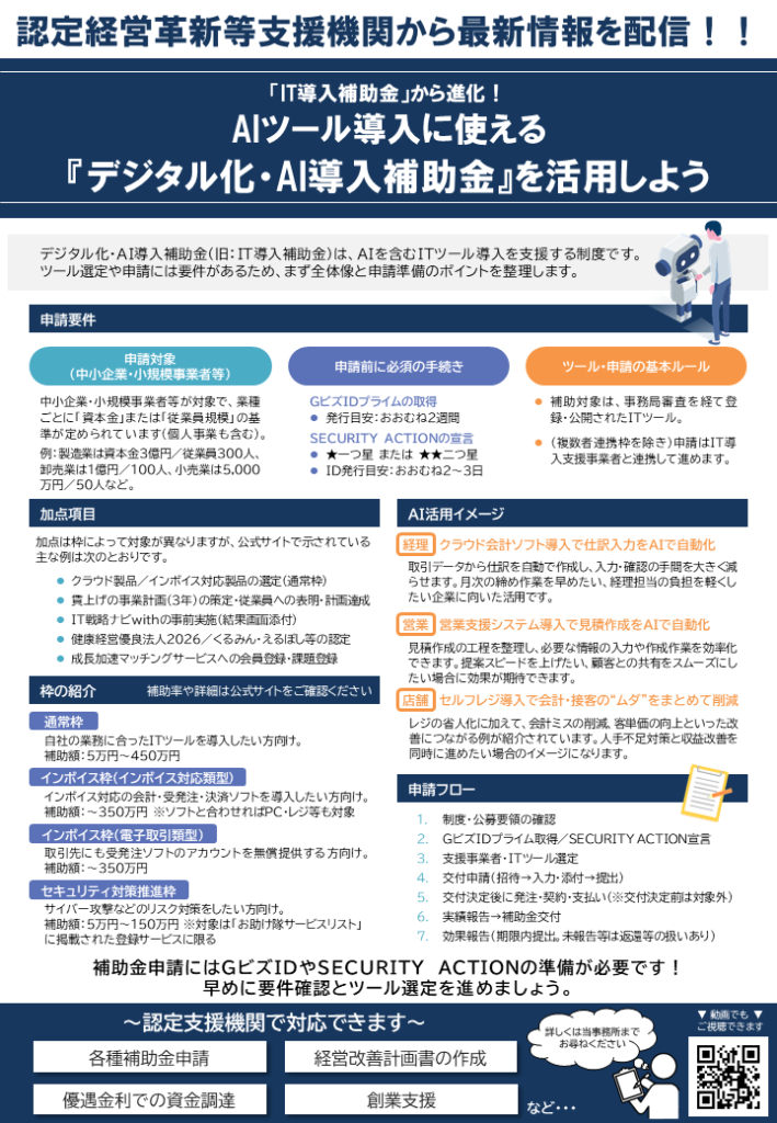 「IT導入補助金」から進化!AIツール導入に使える『デジタル化・AI導入補助金』を活用しよう(NewsLetter2026年5月号)